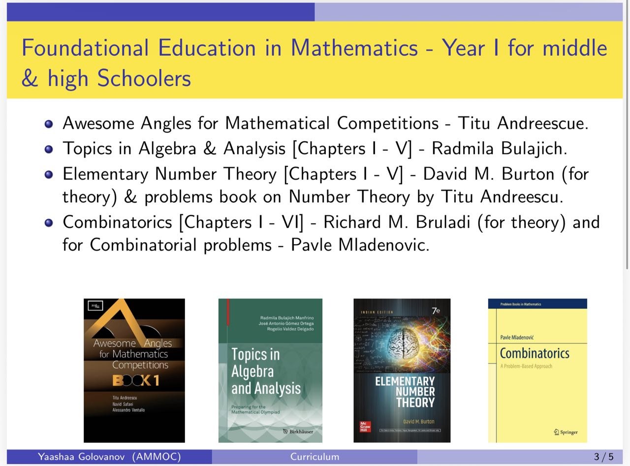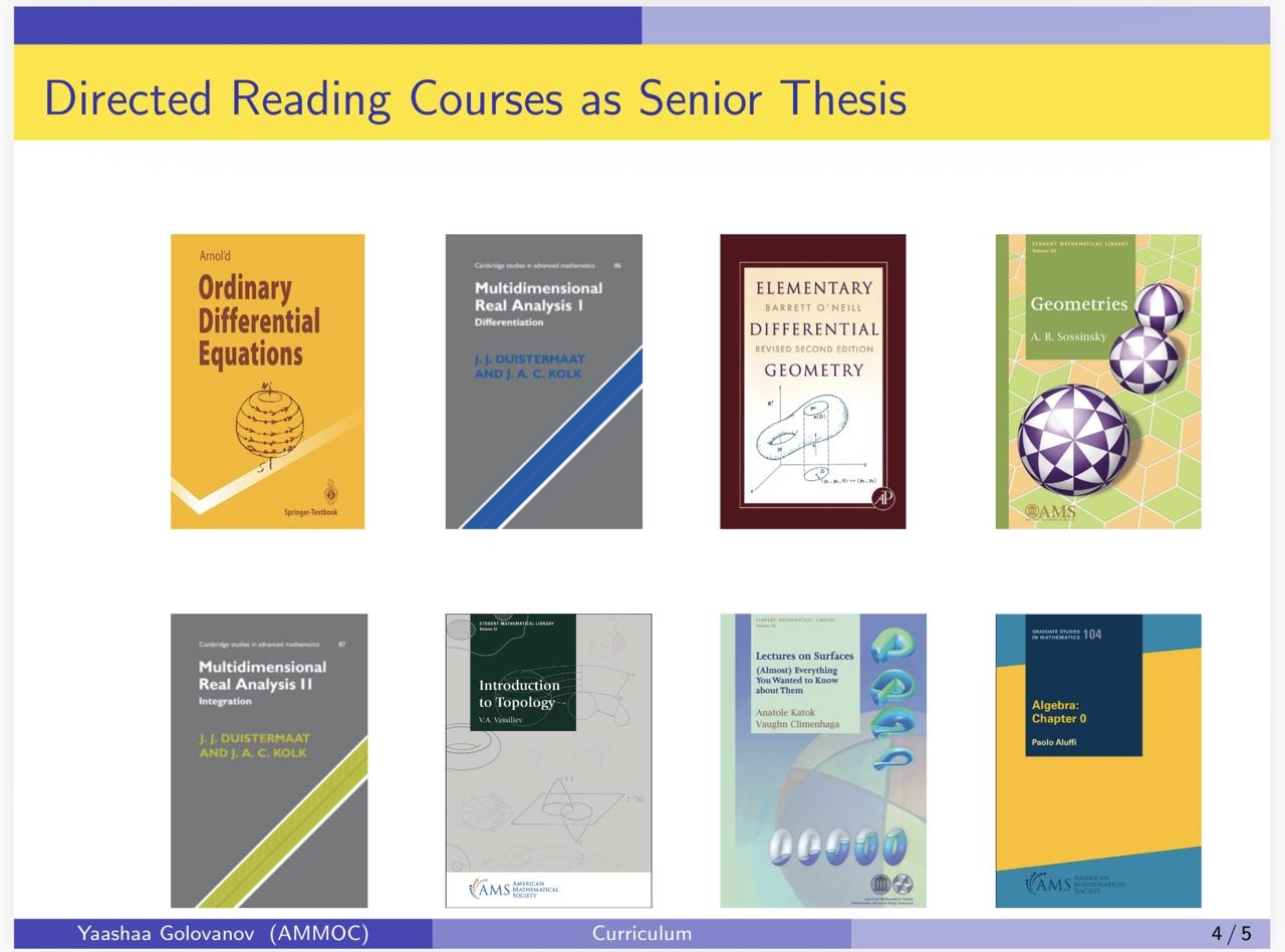 Two of the most advanced protégés, Prasanna Mahesh Pawar and Sarthak Dattatray Dhobale (a freshman at Princeton), have done many of these directed reading projects. Sarthak received a full ride to study pure math at Princeton, Class of 29.