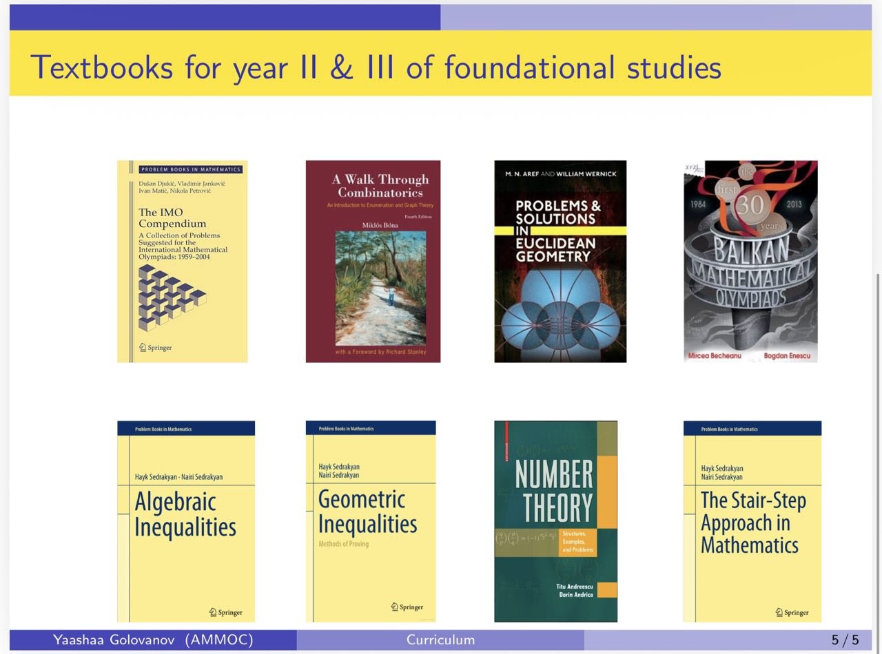 Note that many of the books written on olympiad mathematics are entirely “problem-oriented,” and therefore, rigorous and detailed theoretical supplements needed to solve these problems are what constitute the core of Golovanov’s lectures for mentees at AMMOC.
